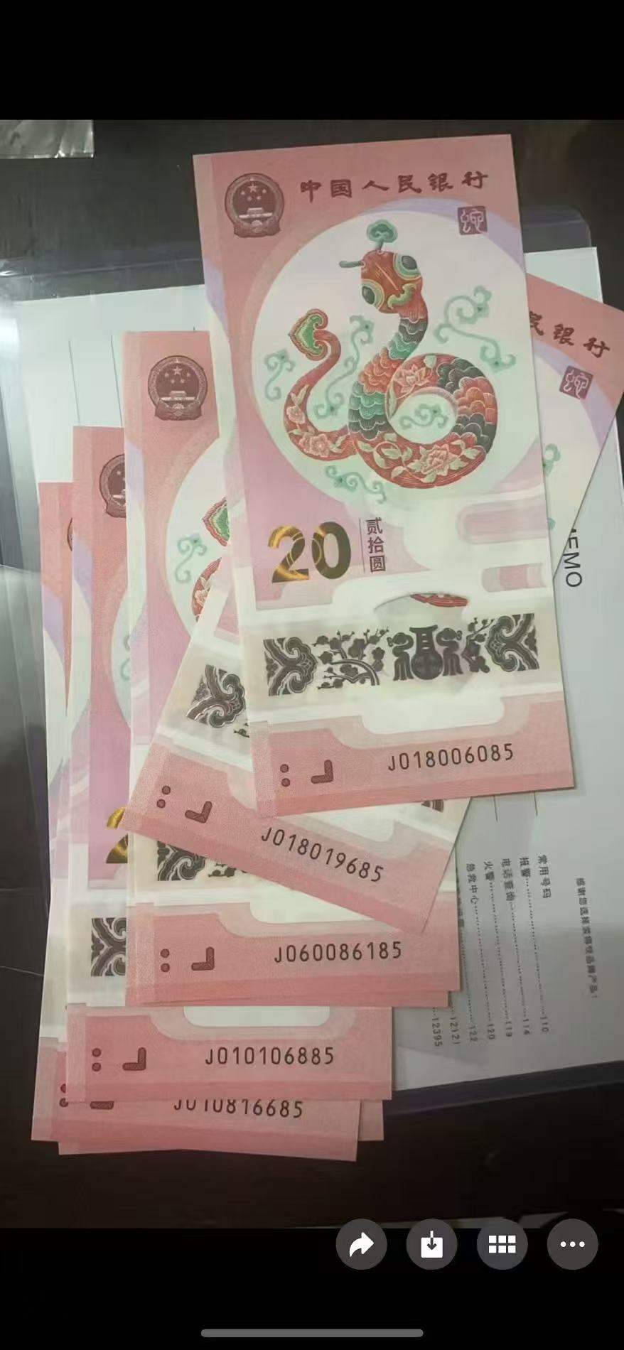 130元求蛇钞倒置号尾85裸币,类似下面图片这种号码