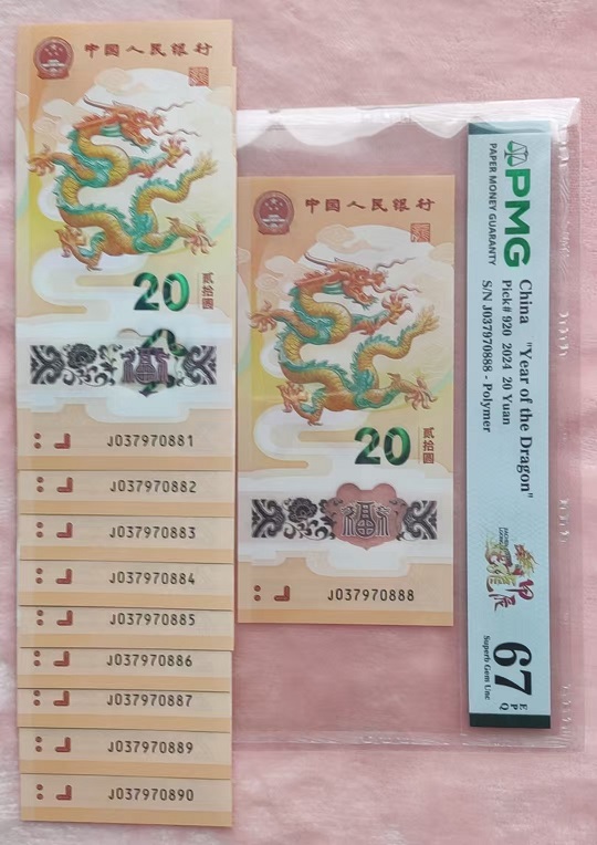 龙钞037970881-037970888-037970890 标十主币PMG67分 低售2580元 微信15385822220