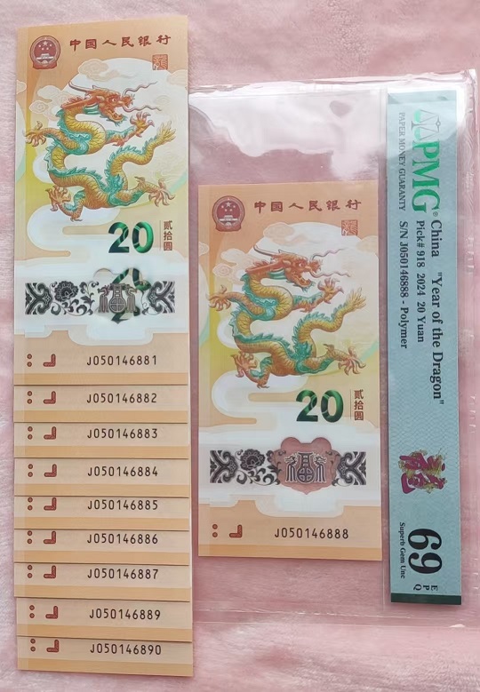 龙钞050146881-050146888-050146890 标十主币PMG69分 低售2280元