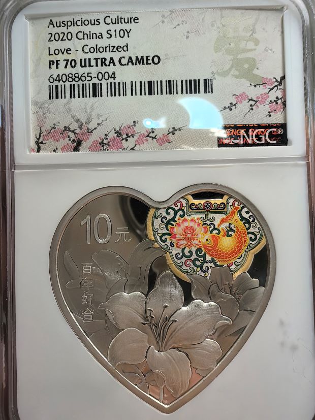 → 售2020年百年好合心银NGC70分爱标,心金中金国衡封装