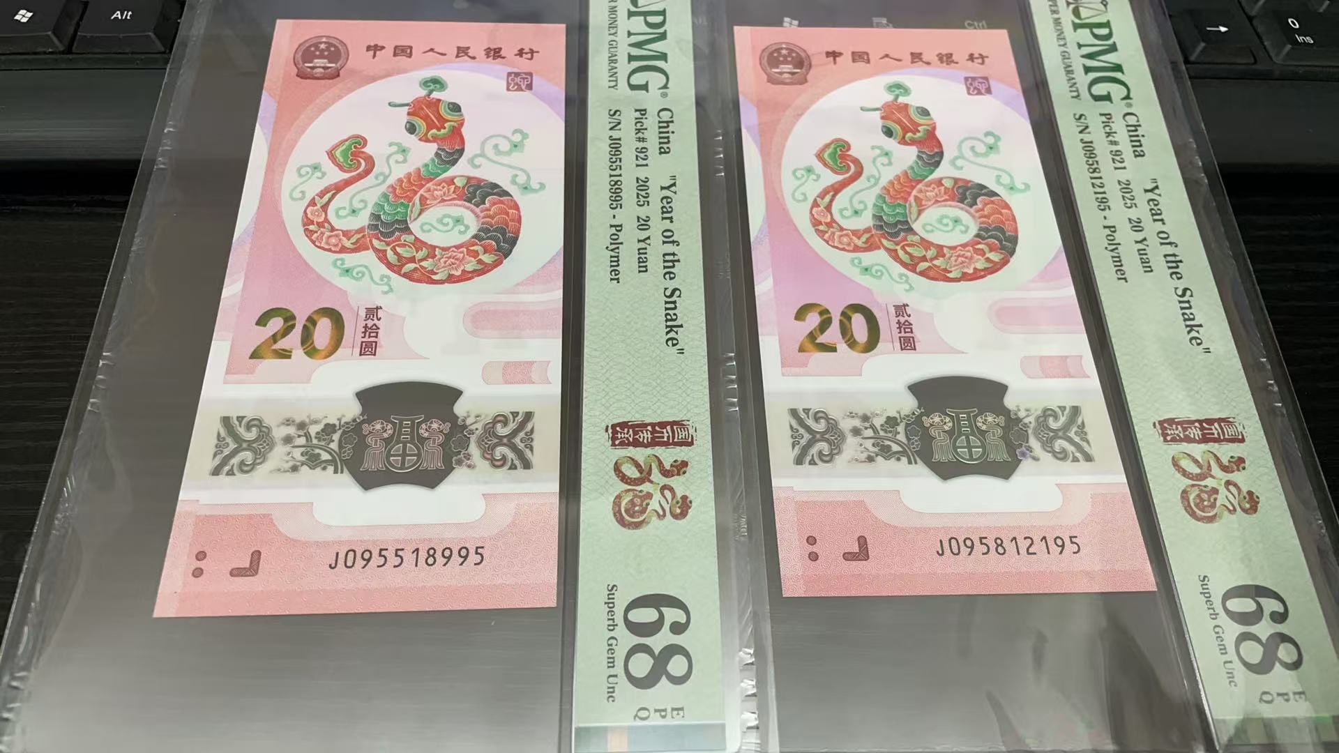 → 3999售两张PMG68蛇钞无三四七满号95头95尾