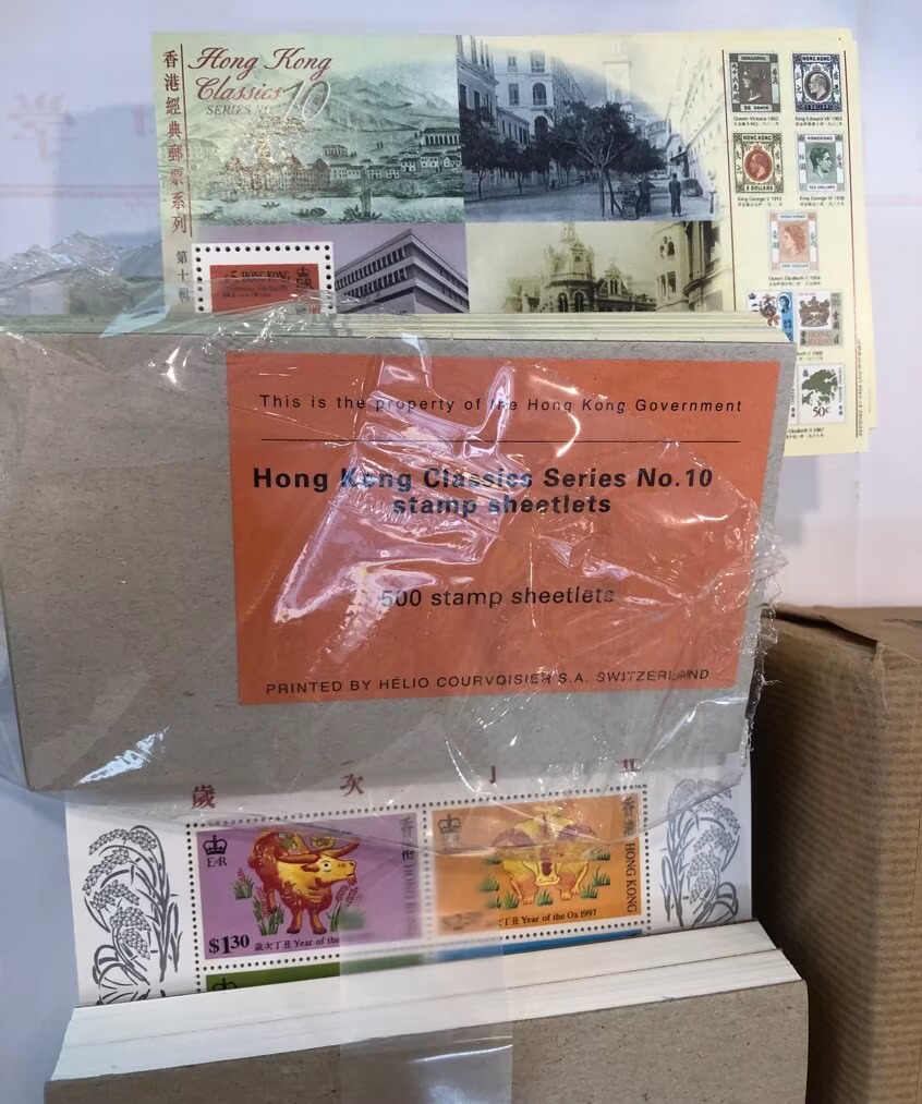 快出香港97牛小全张1原捆和1开捆,经典系列十辑1开捆,