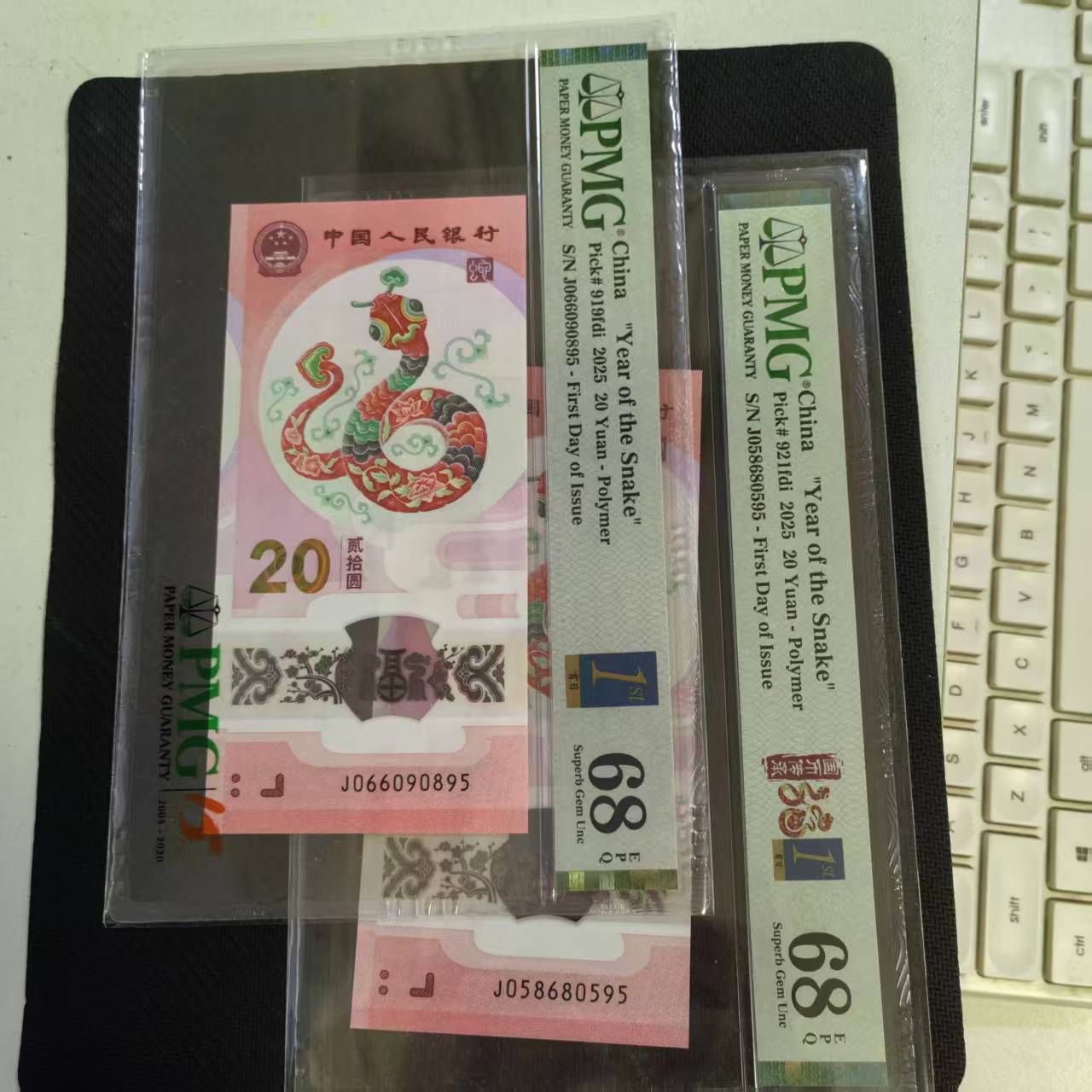 出售2张蛇钞PMG68金马王尾95至尊。如图,2张一起出2100包顺丰.