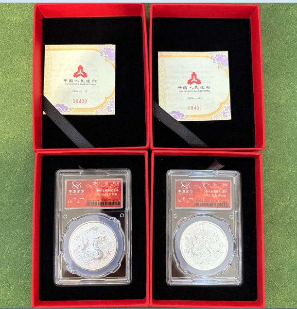 → 4500通走金总2枚龙银 封装证书08407 08408
