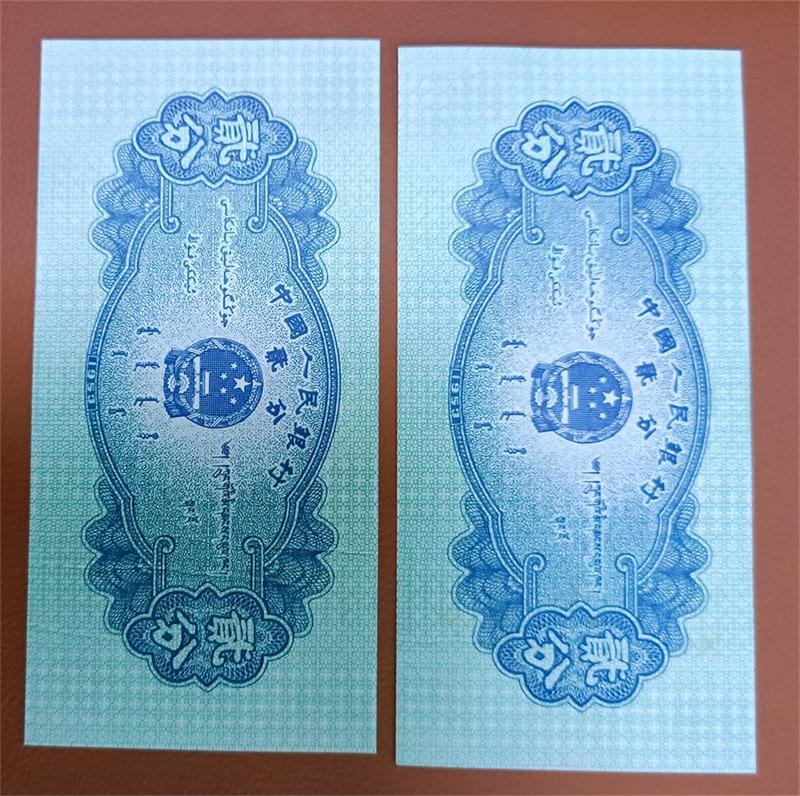 售两张瑕疵贰分纸币折白,折幅度小。两张售价1600元。请电联。