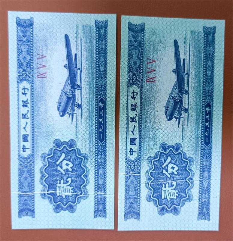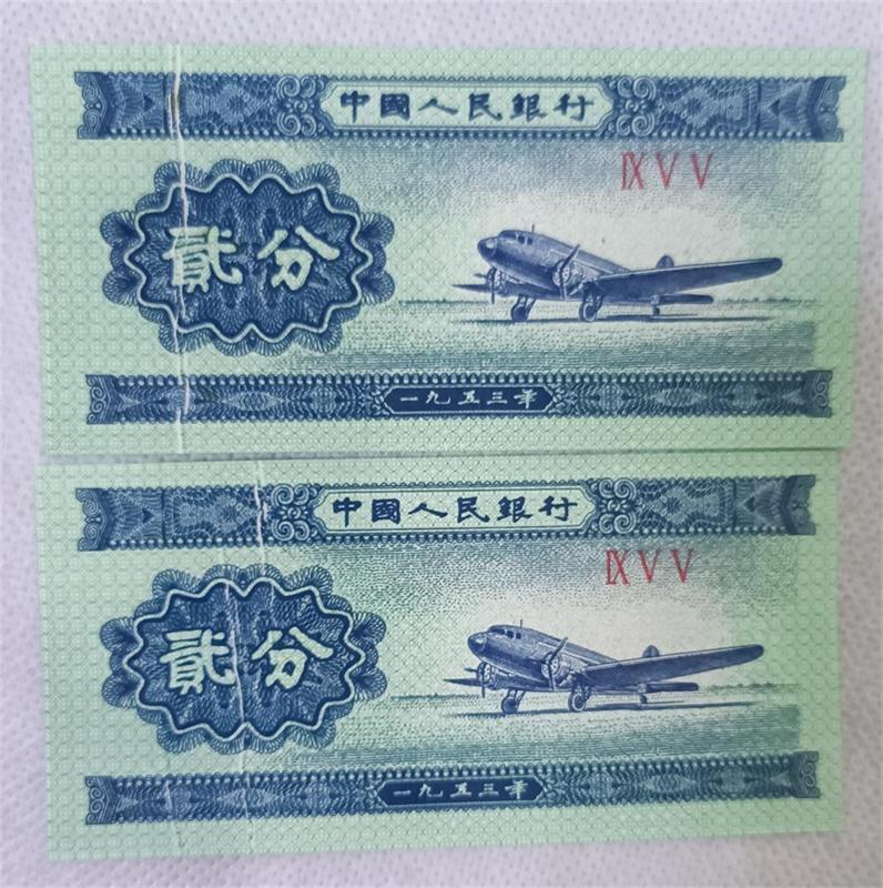 → 售两张瑕疵贰分纸币折白。