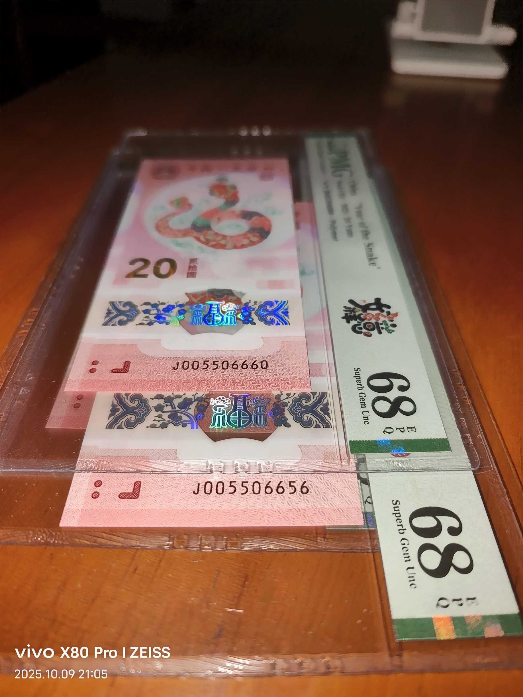 3000元出售两张精品蛇钞056蛇三,pmg68分