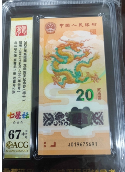 出一组无34龙钞标十爱藏67+,尾91(95至尊)