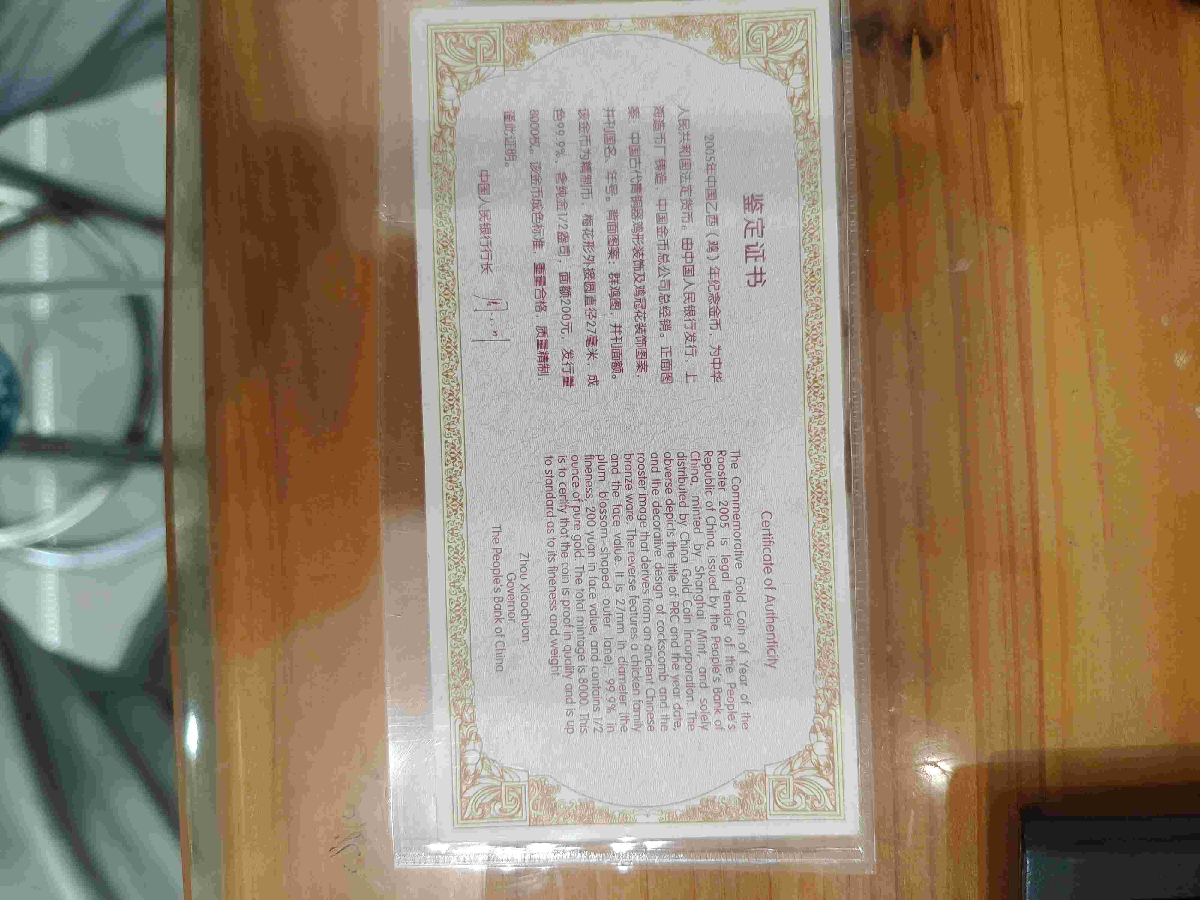 出一张2005年鸡年金币证书 顶级靓号 …………