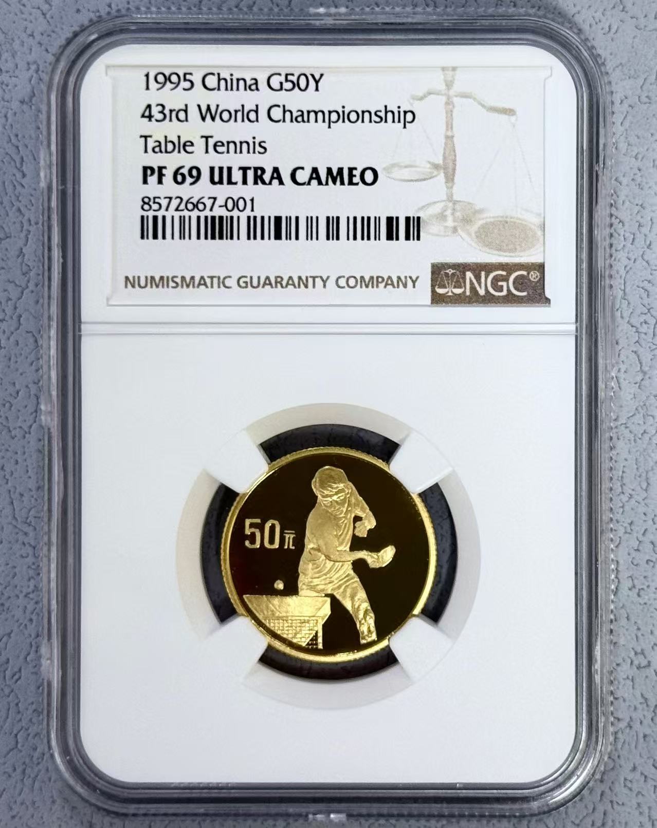出售2枚NGC69分【1995年世乒赛金币】,配一套盒证!通走:21000元/枚,确认有效!!!