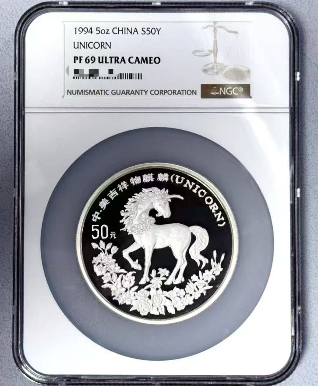 ---出售NGC69分【1994麒麟5盎司银币】---