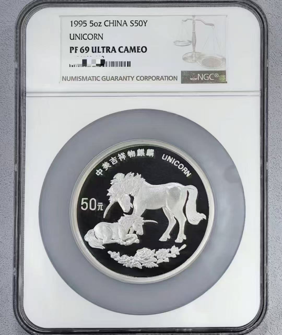 ----出售NGC69分【1995麒麟5盎司银币】----