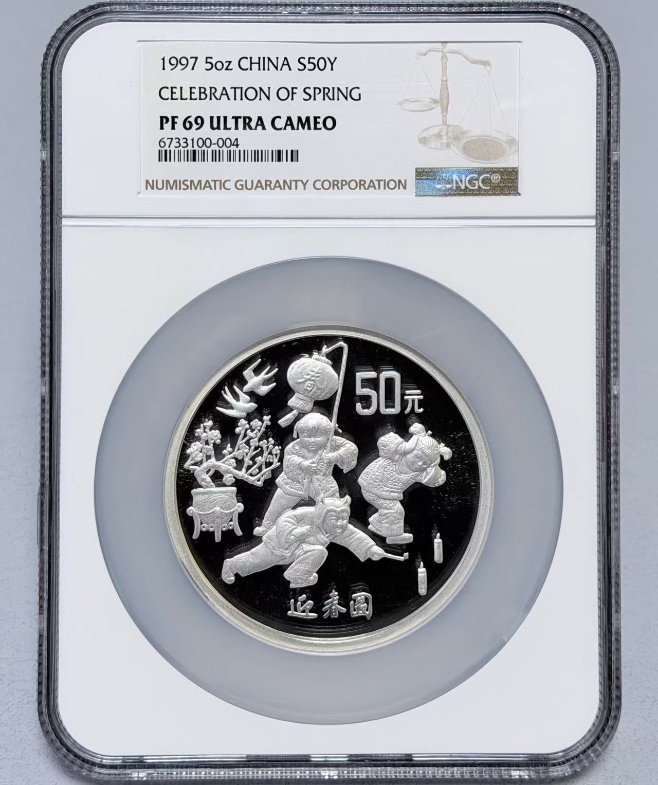 出售NGC69分【1997年迎春图5盎司银币】,售价:13000元,确认有效!!!