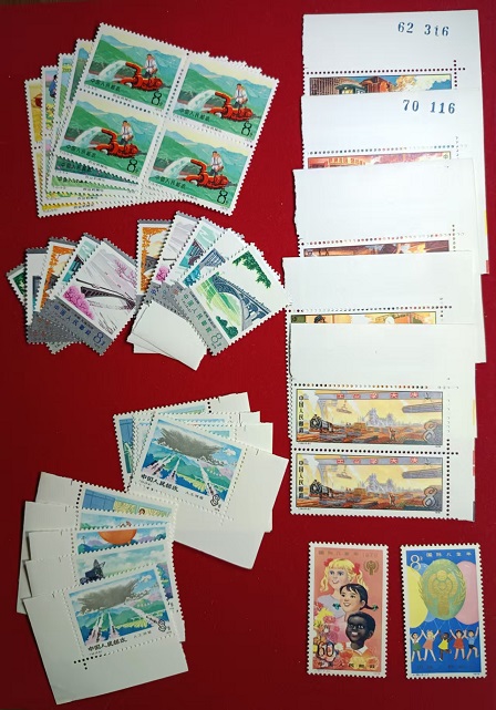 农业机械四方,原胶全品480。钢铁右上双联,部分版号,原胶过灯全品,110。桥,原胶全品,30一套,共二套。气象边角,原胶全品70两套。儿童年原胶全品金亮65。