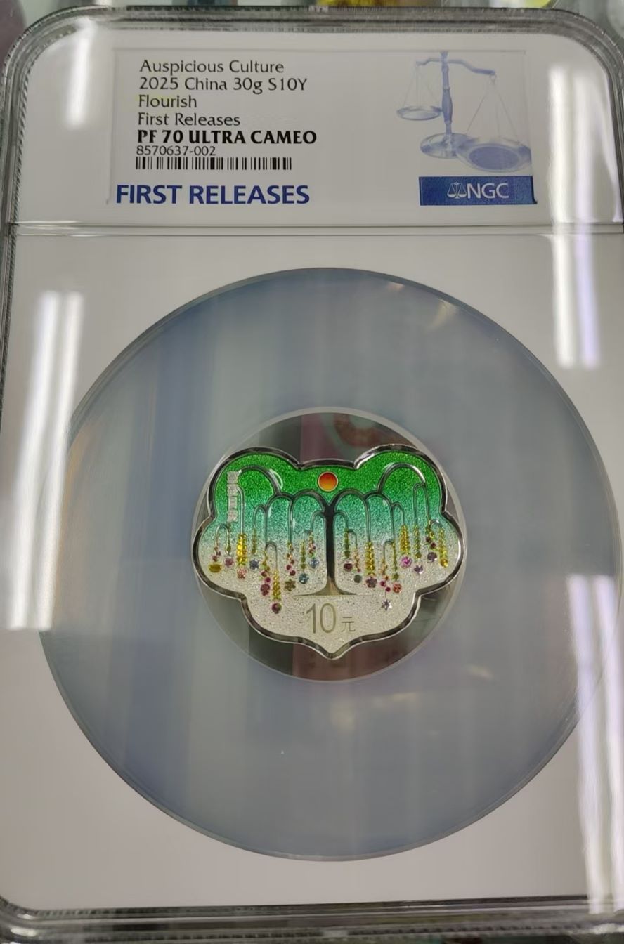 2025年瑞气盈门NGC70分首期福标2050元。蔓蔓日茂NGC首期蓝标1150元证书均无4