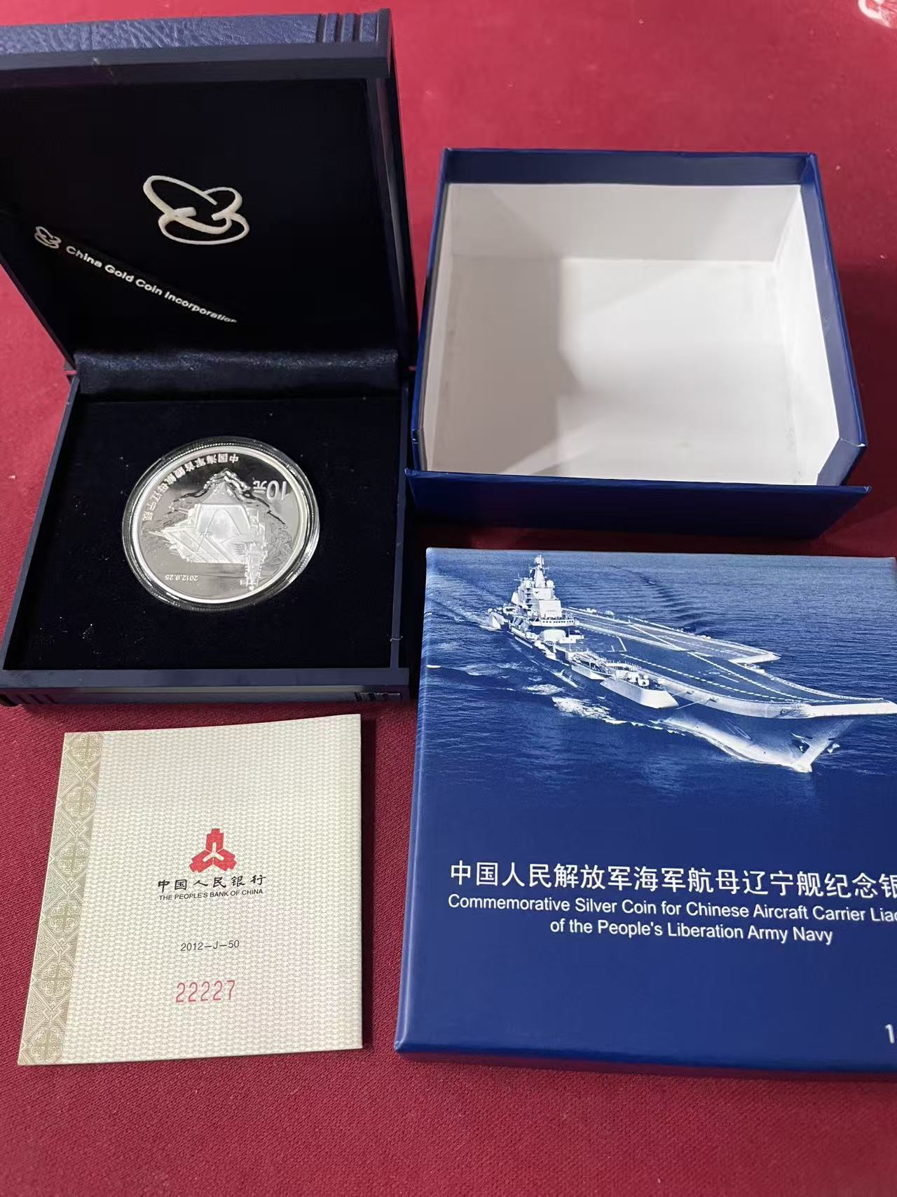 出2012年辽宁舰银币 证书22227,全品相,950元包快