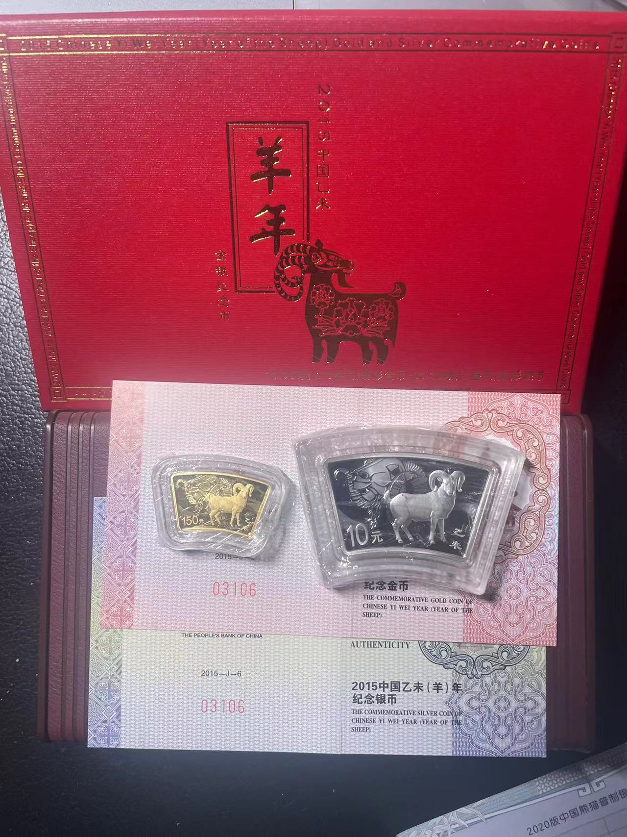 售:15年扇形金银羊、17年扇形金银鸡各1套