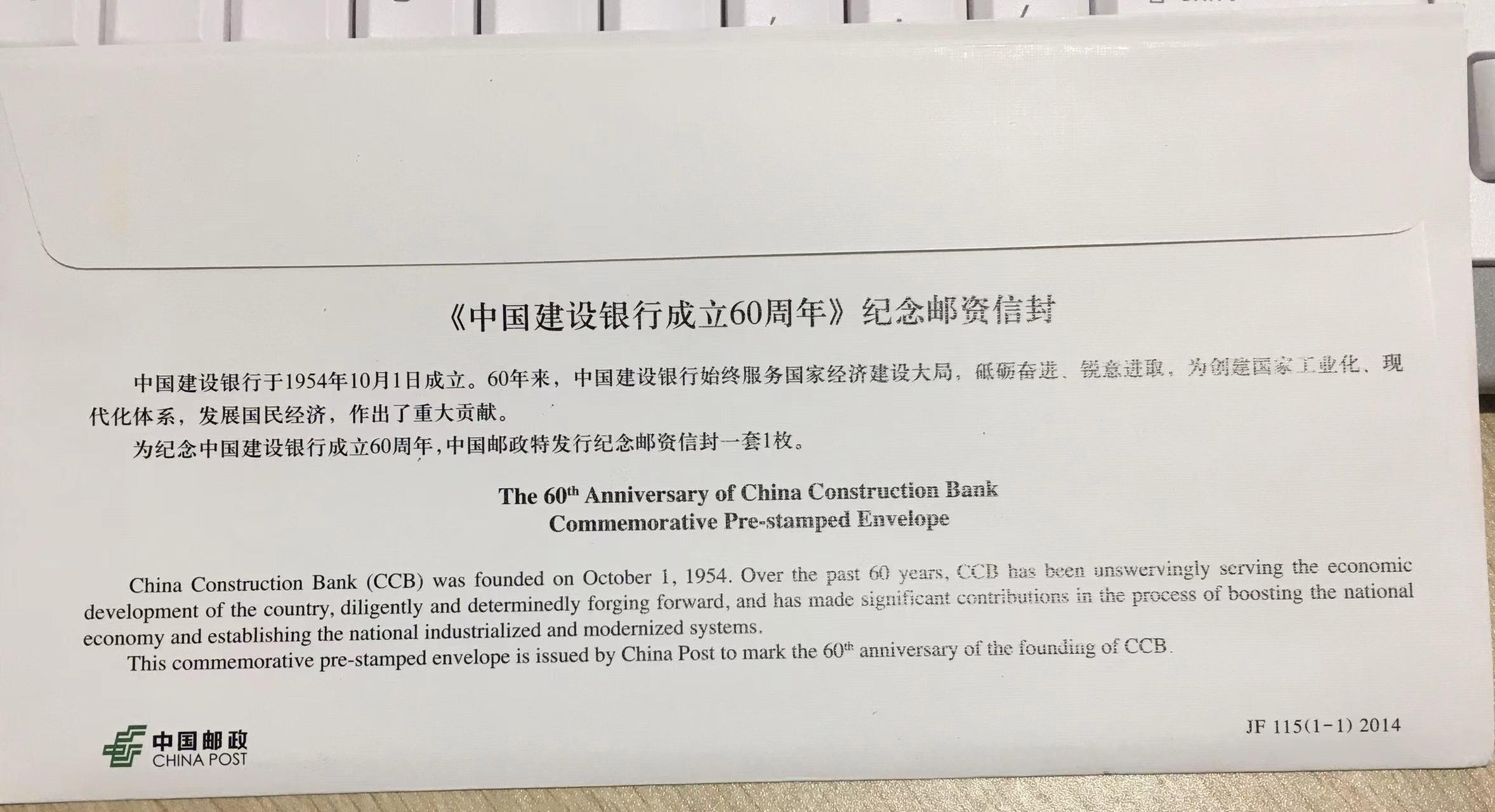 → 售JF115建设银行成立60周年纪念邮资信封