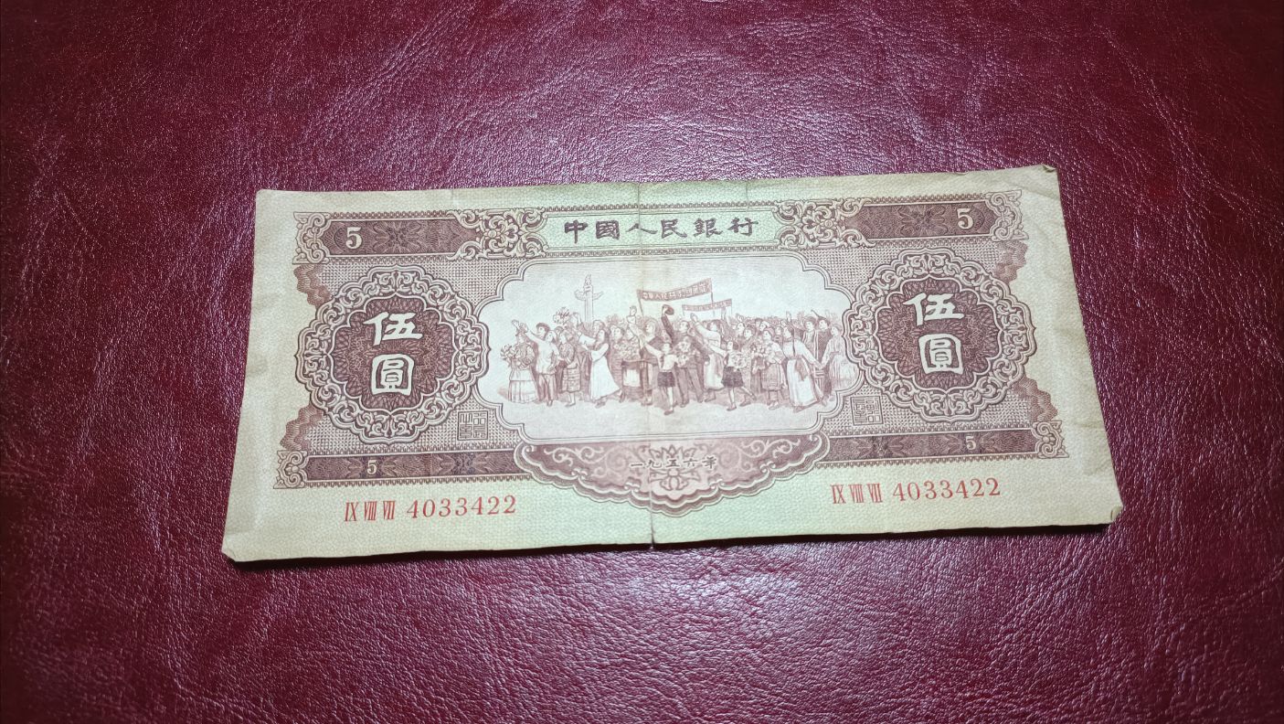 黄五元原票好品板子硬朗,中间有裂,410包邮。