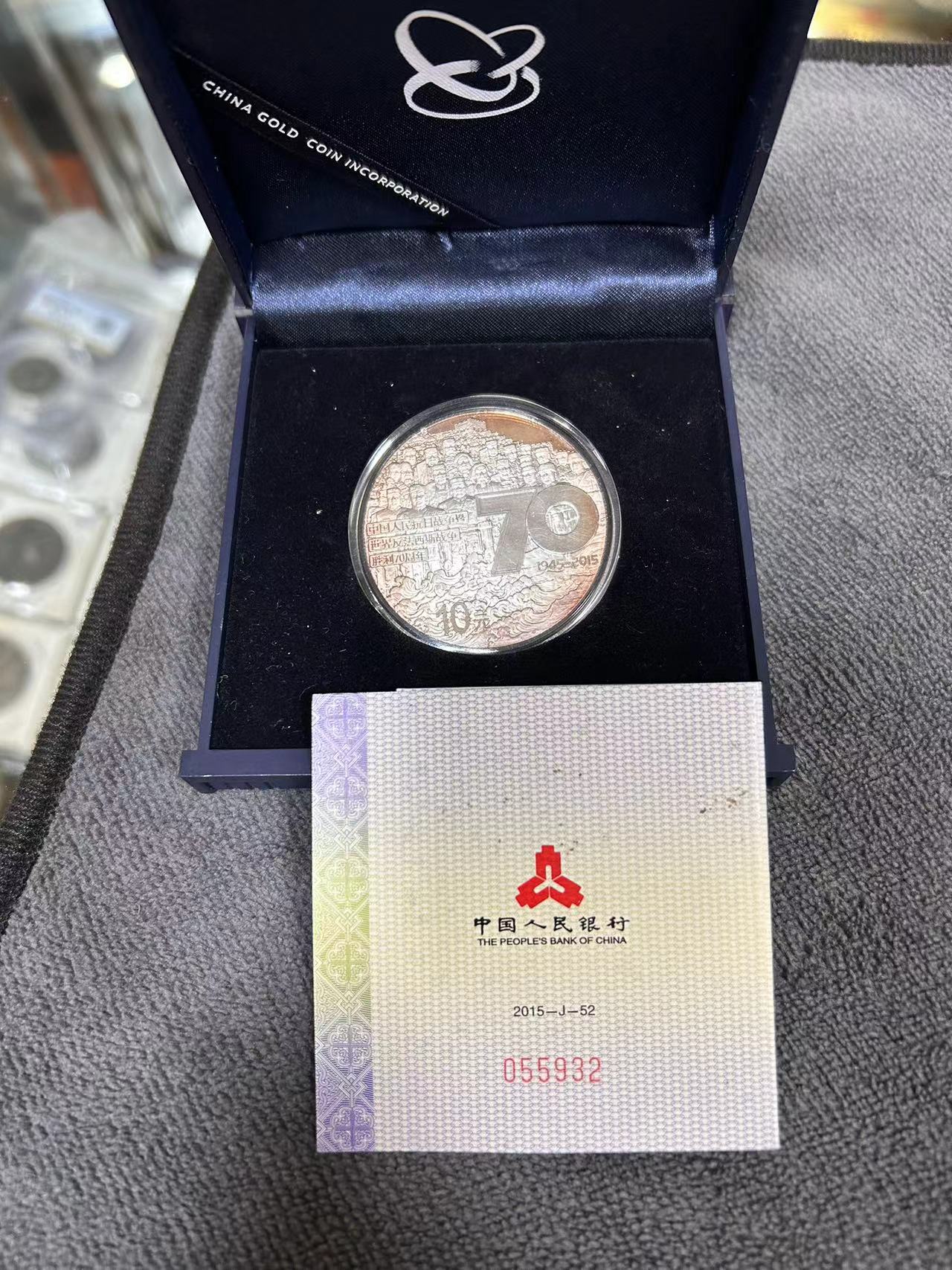 → 抗战70周年银币一枚带证书有氧化520元