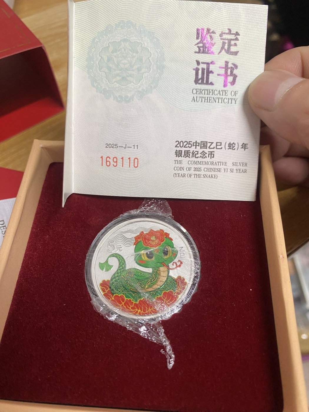 2025年15克彩银蛇一枚,证书倒置号,售410元包邮