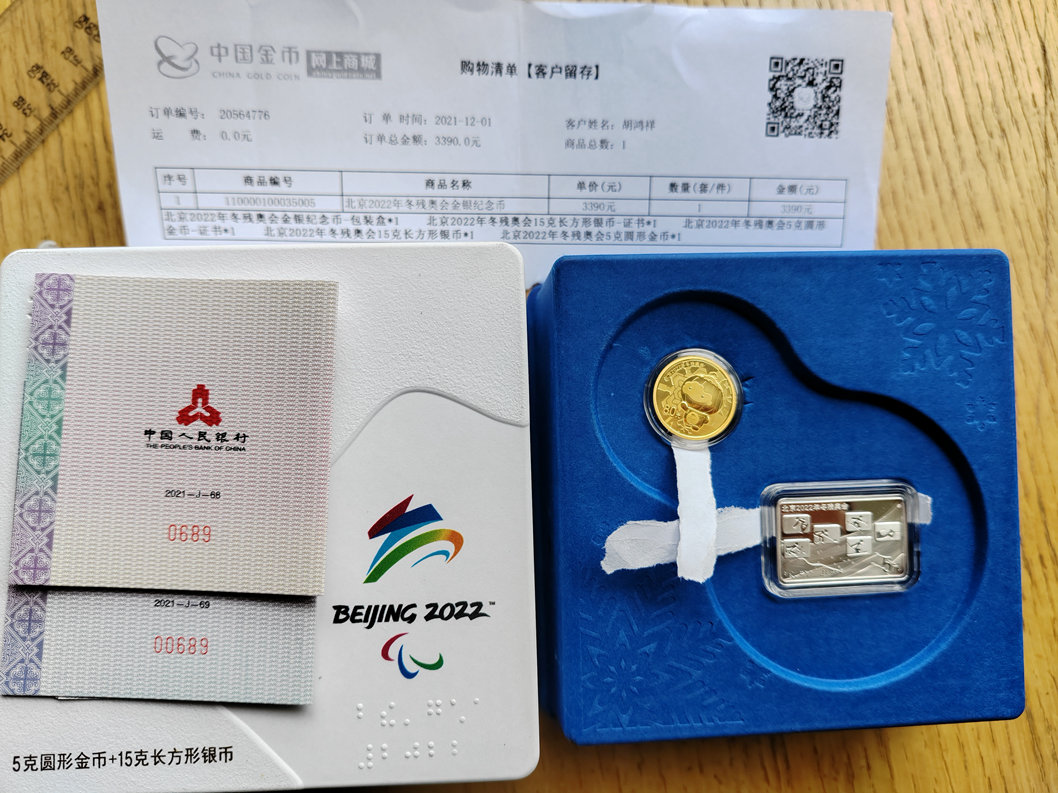 帮朋友出 2022年冬残奥会金银币 靓号0689金银币,5280元 三包到手
