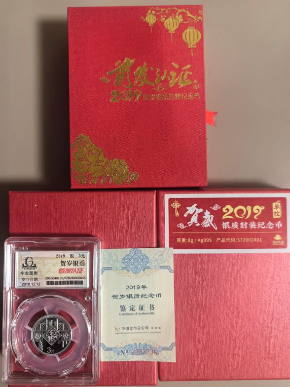 → 出中金首发2019年3元贺岁福礼盒银币