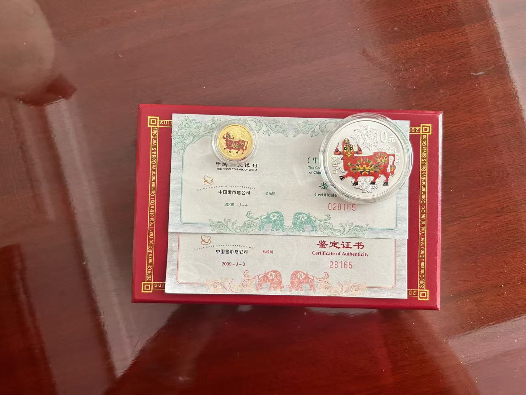 售:09年彩金银牛1套10500元,05年彩色金银鸡1套5500元,10年彩金虎2枚3200元/枚。