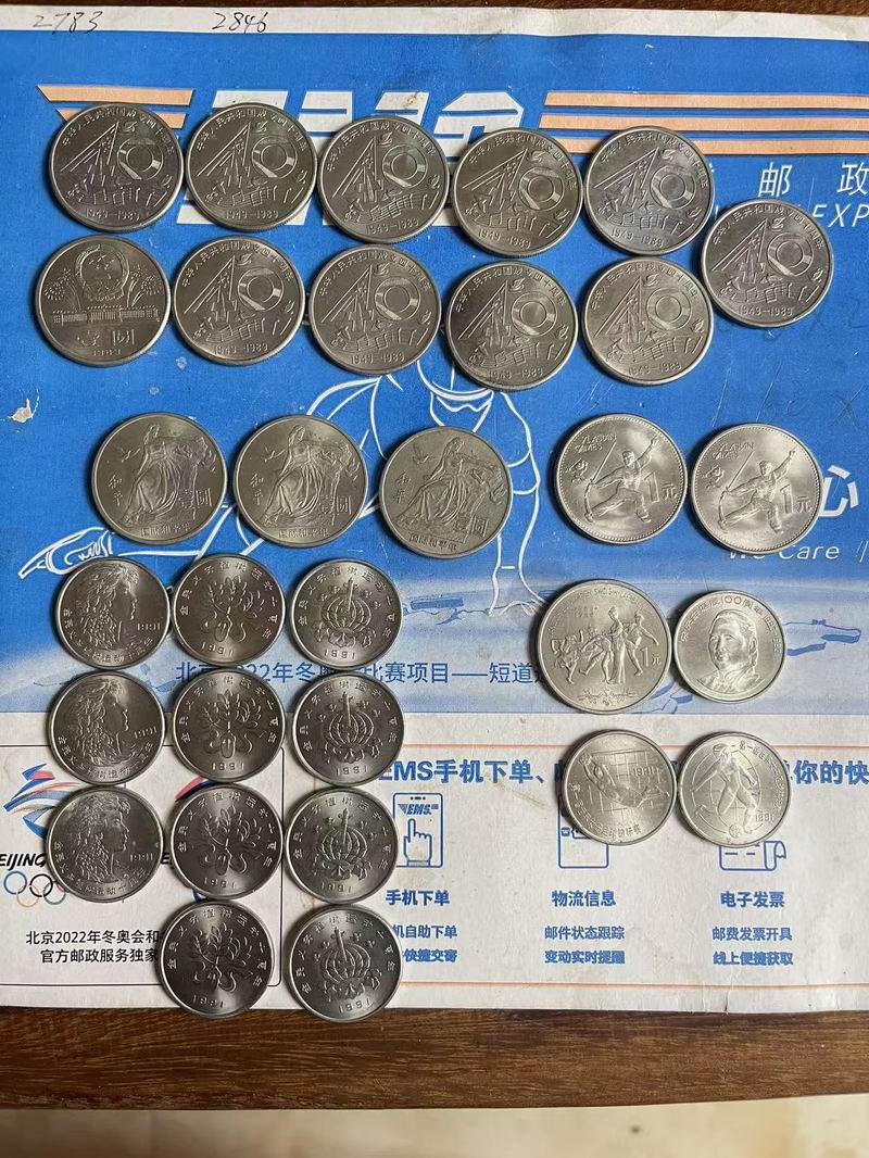大40有11枚,和平3枚,宋庆龄1枚,广西1枚,植树节3套加2枚,女足1套,武术2枚,共400元,下面的面值93元,算90元,一起490元包邮。