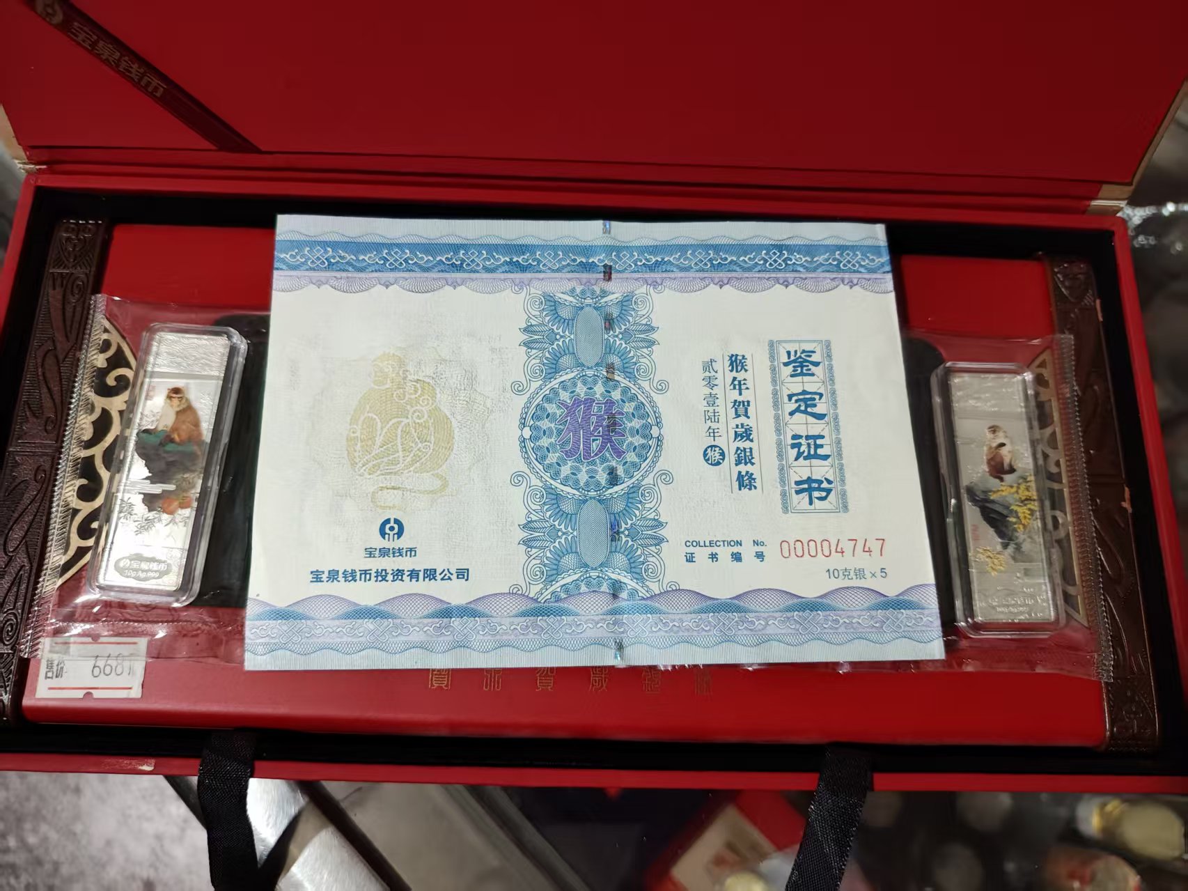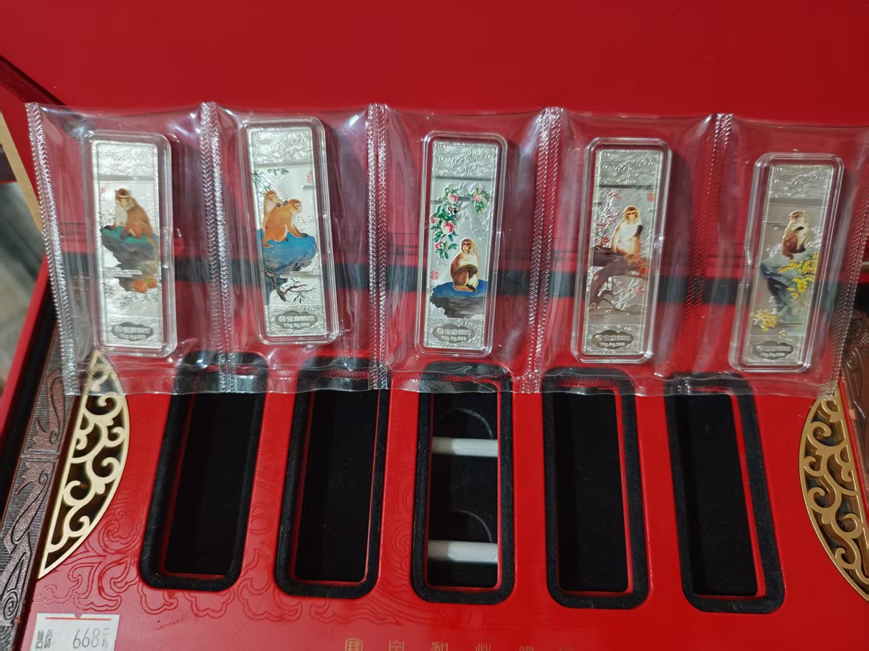 猴1鸡各一套,1套5枚每枚10克,2套一起售1300元。