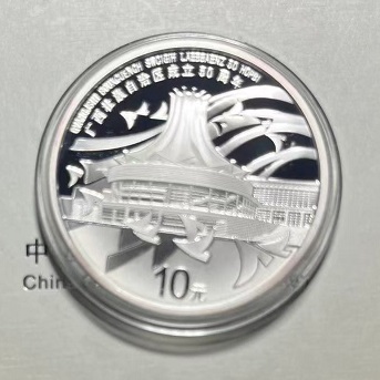 广西壮族自治区成立五十周年纪念银币,无盒无证,无白雾无斑,520元。微信13807109407