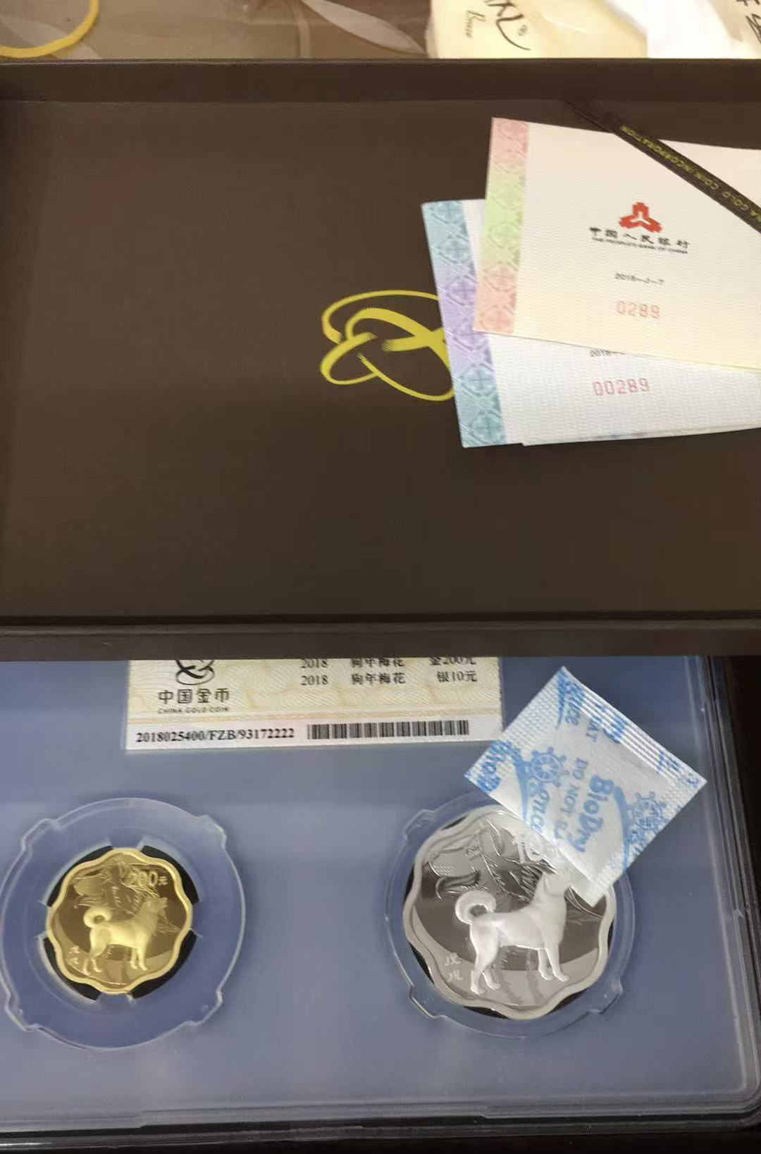 → 出金总封装2018年梅花金银狗一套,证书朦胧号