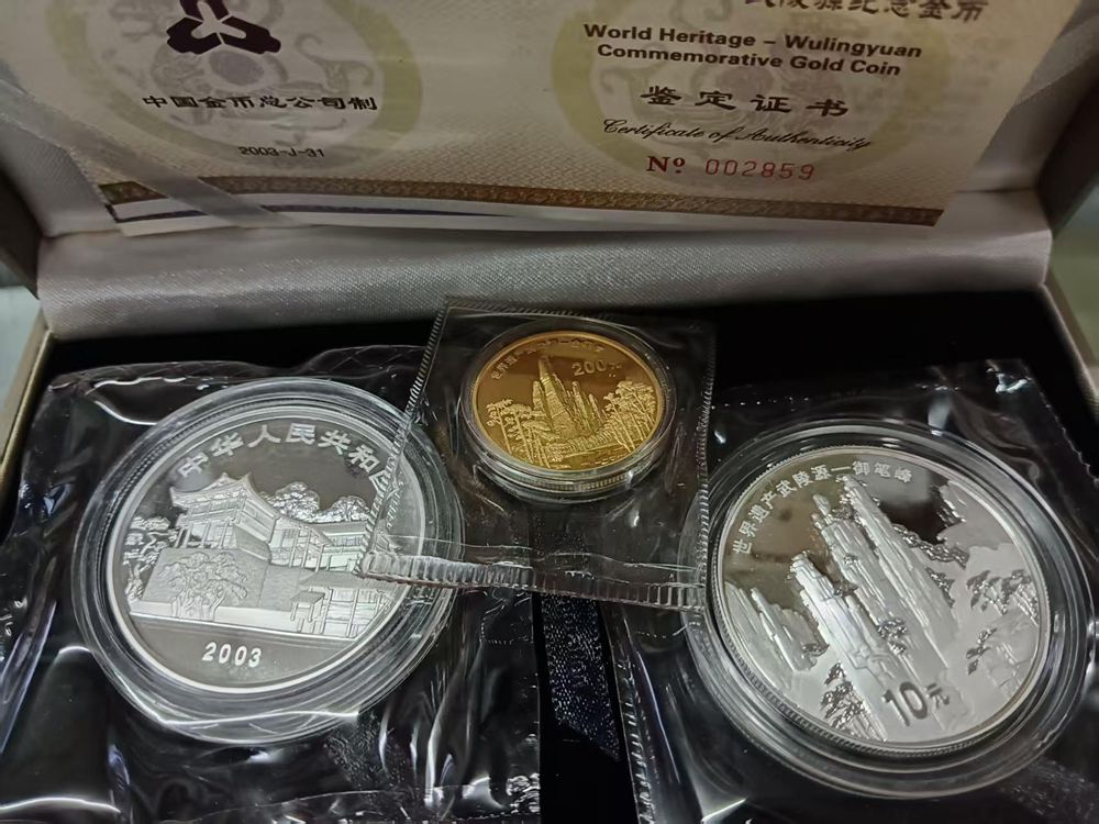 电联确认武陵源!包好品原封。金币无金锈黄斑。银币无白雾白斑!三包到手!款到发货!三包到手!不符包退!谢谢!
