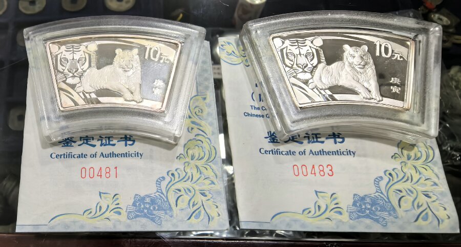 出售2010年 扇银虎2枚,有证书无盒,边有氧化,600元每枚包邮