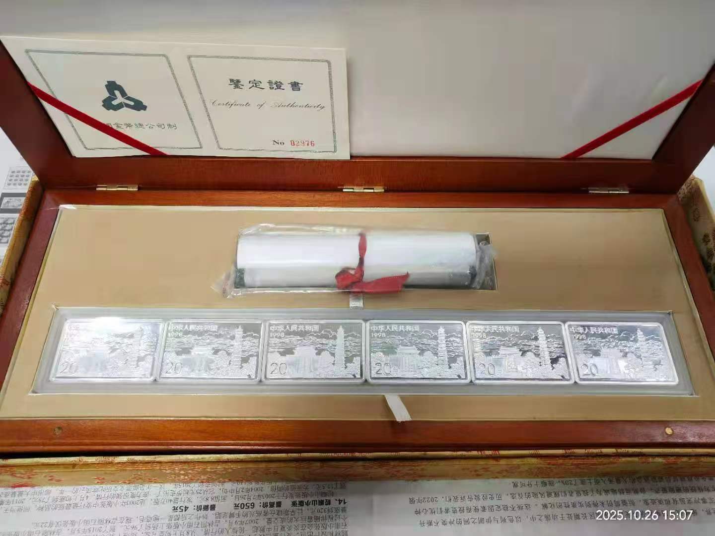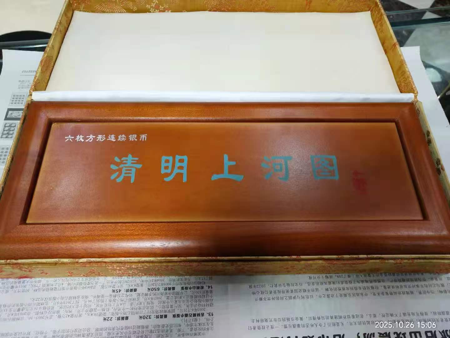 清明上河图银币,塑料封刚拆开,边有白雾,售价6500元。