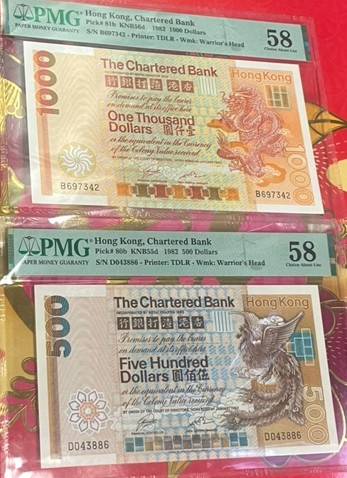 → 售1982年香港渣打大金龙1000大凰500一对呈祥