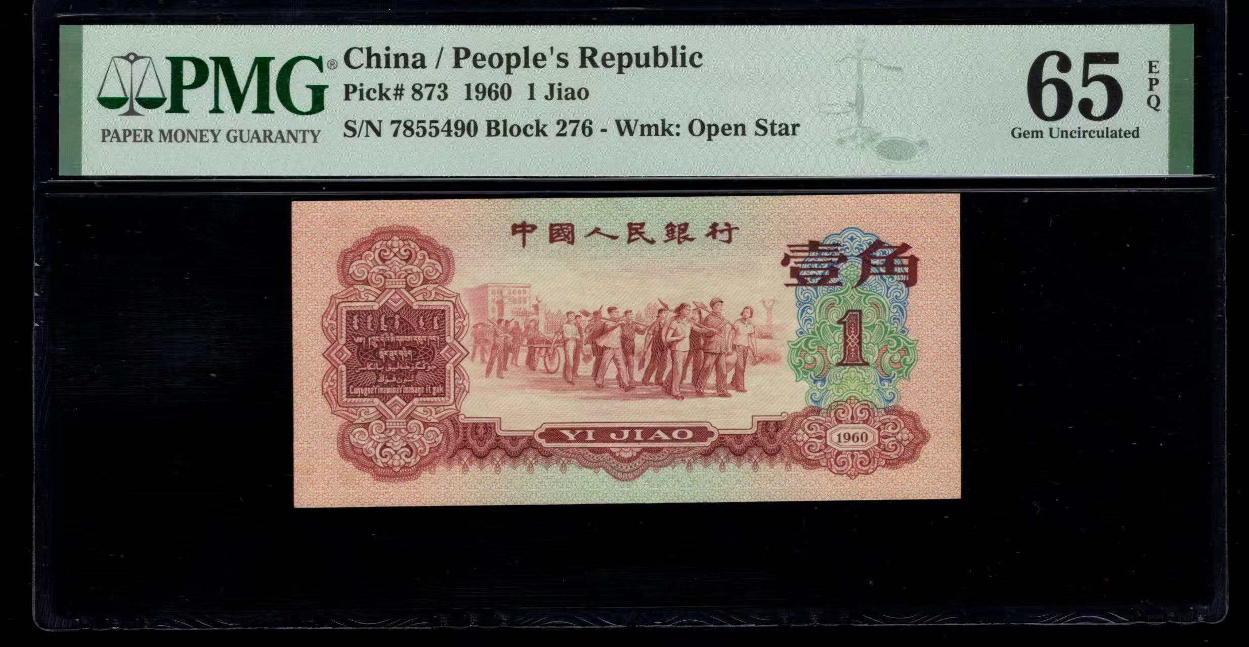 三版明星品种枣红一角美评PMG65E,颜色鲜艳,全新直版,水印清晰,售价4100包顺丰