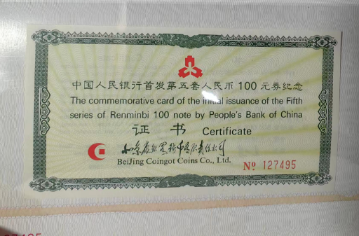 → 出售:99版首发100元纪念钞
