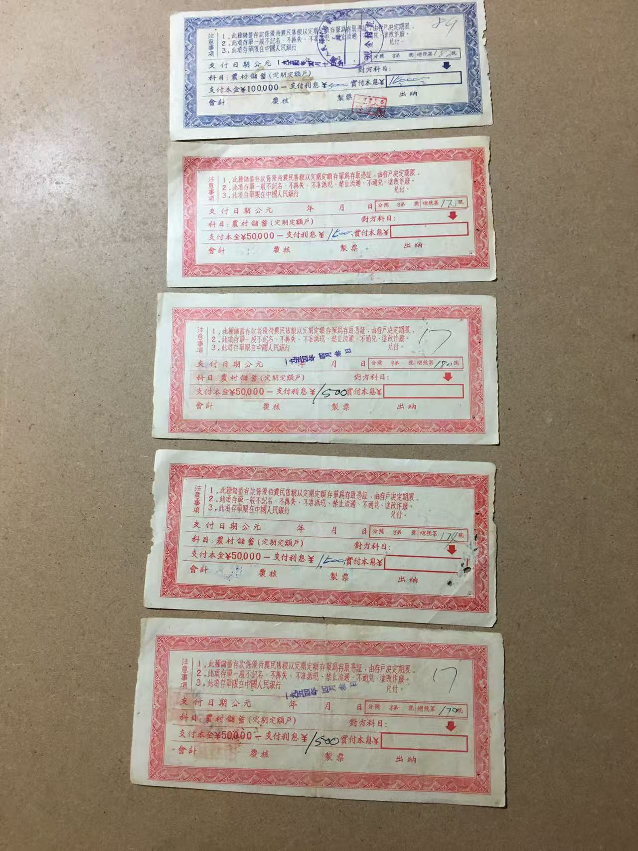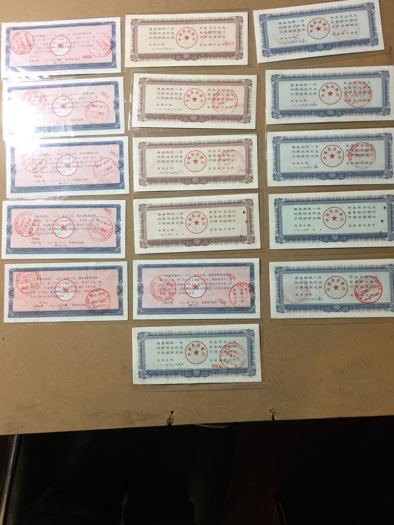 → 出中国农业银行债券16张、储蓄存单5张