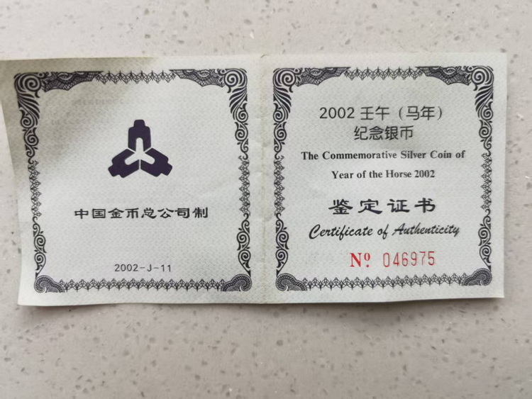 2002年1盎司马银币1枚带证书