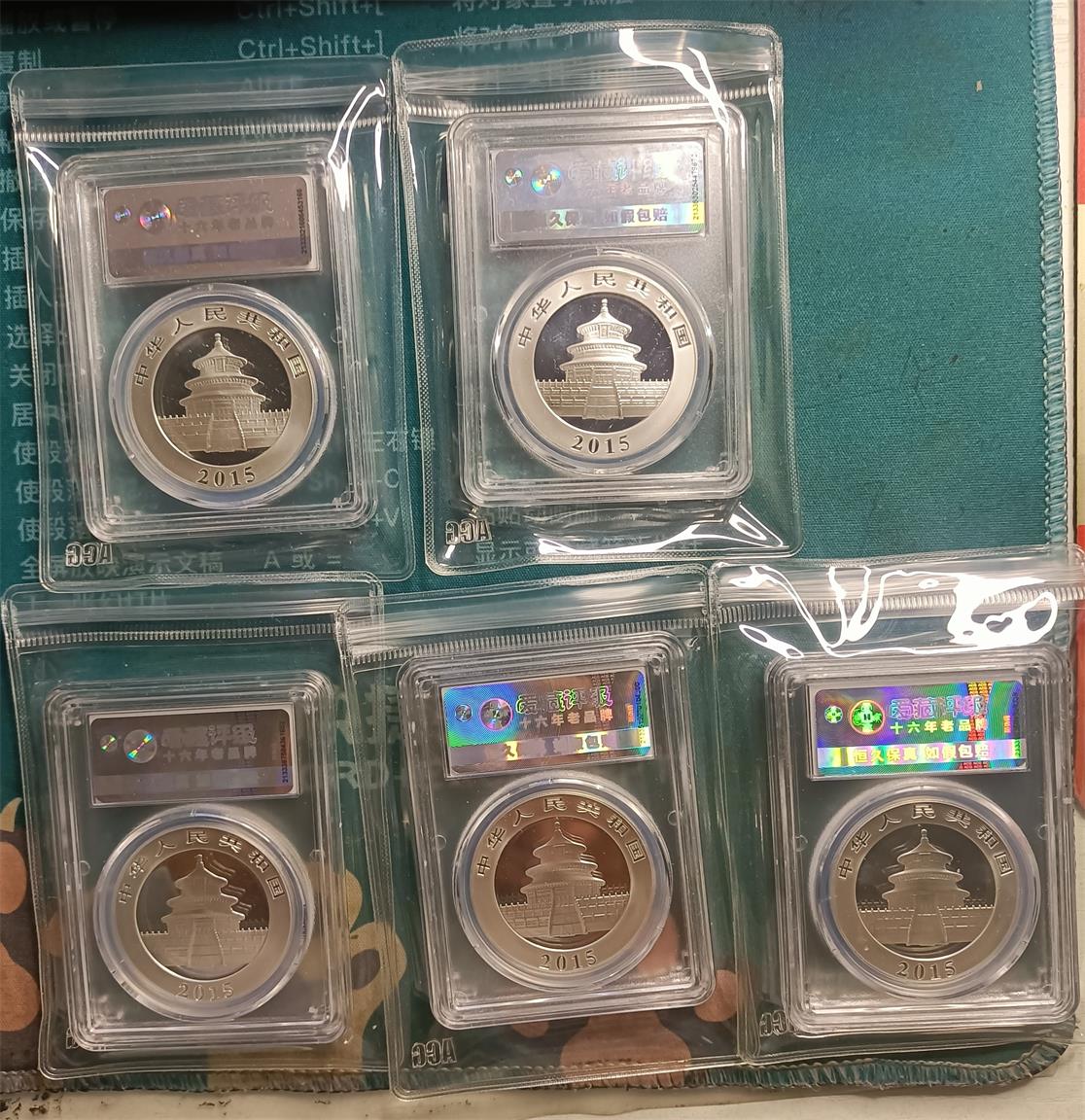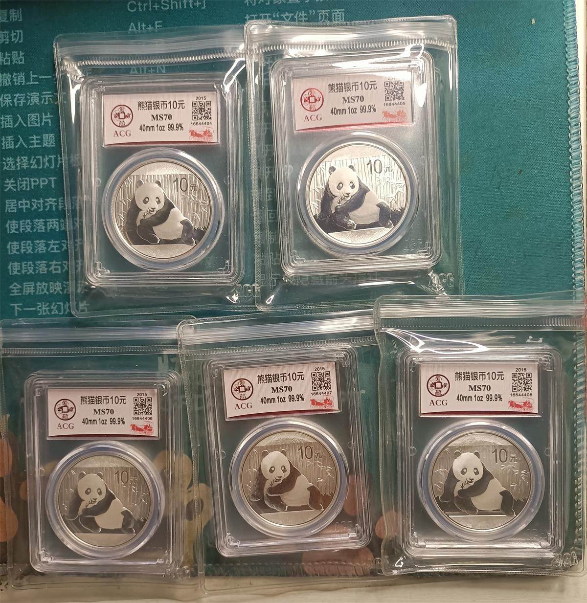 2015年熊猫银币5枚 ,重量1盎司,都是爱藏评级MS70,评级编号16644404~16644408,爱藏早期评级,品相完美!一起350元/枚,通走包顺丰!