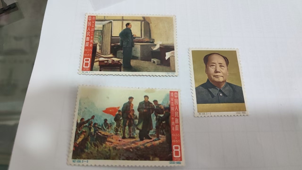 文革坐像原胶有软折微脏1100元,大遵义原胶有脏折800元