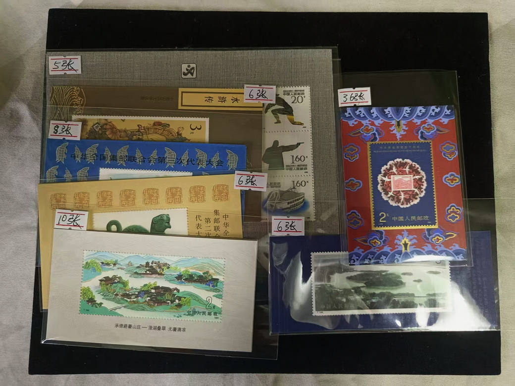 全运会5张,水三6张,三邮8张,二邮6张(微微有指甲印软折),山庄10张,西藏36张,西湖6张,都是全品。