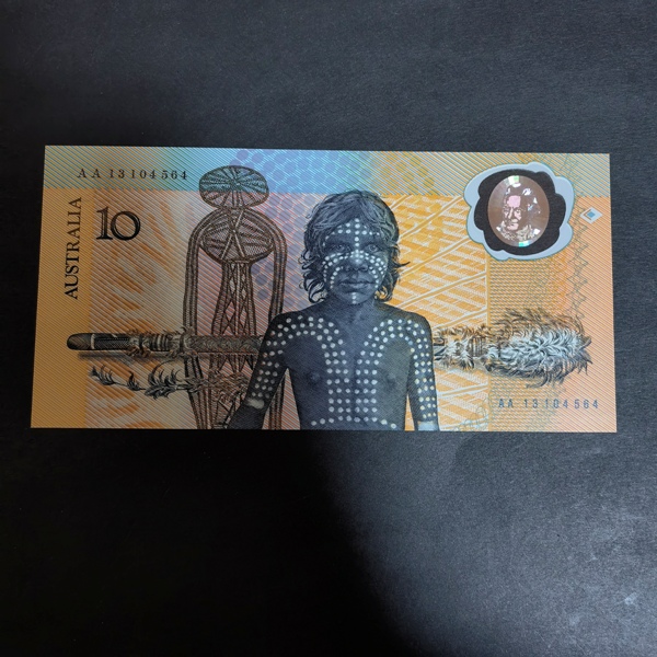 澳大利亚1988年澳洲移民200周年纪念钞AA冠,220元,需要外壳230元.
