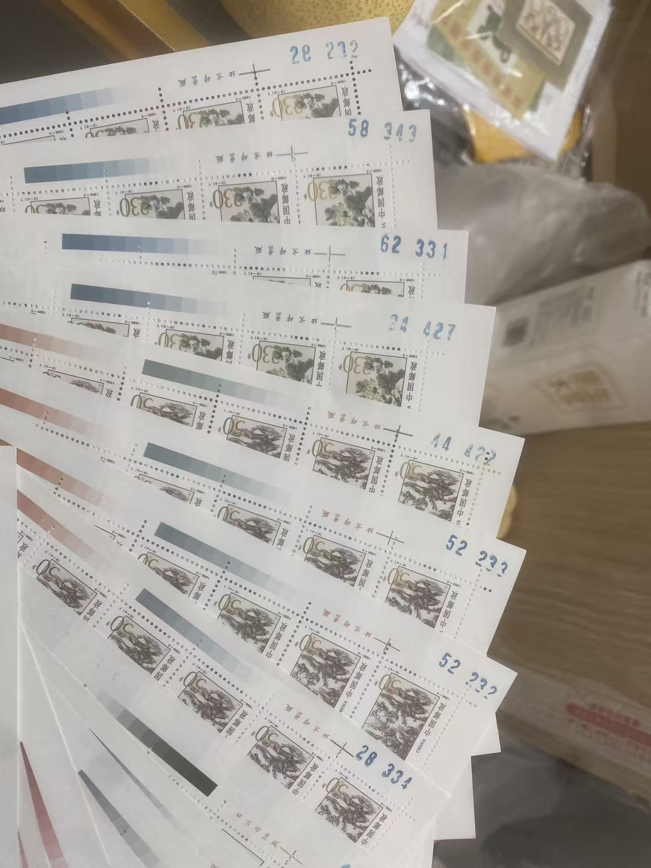 黄宾虹 4版 6-1有2张的同一处有一处黄 175*4 潘天寿 150分的左上角处有2处轻微黄齿 120*3 其他都原胶雪白的