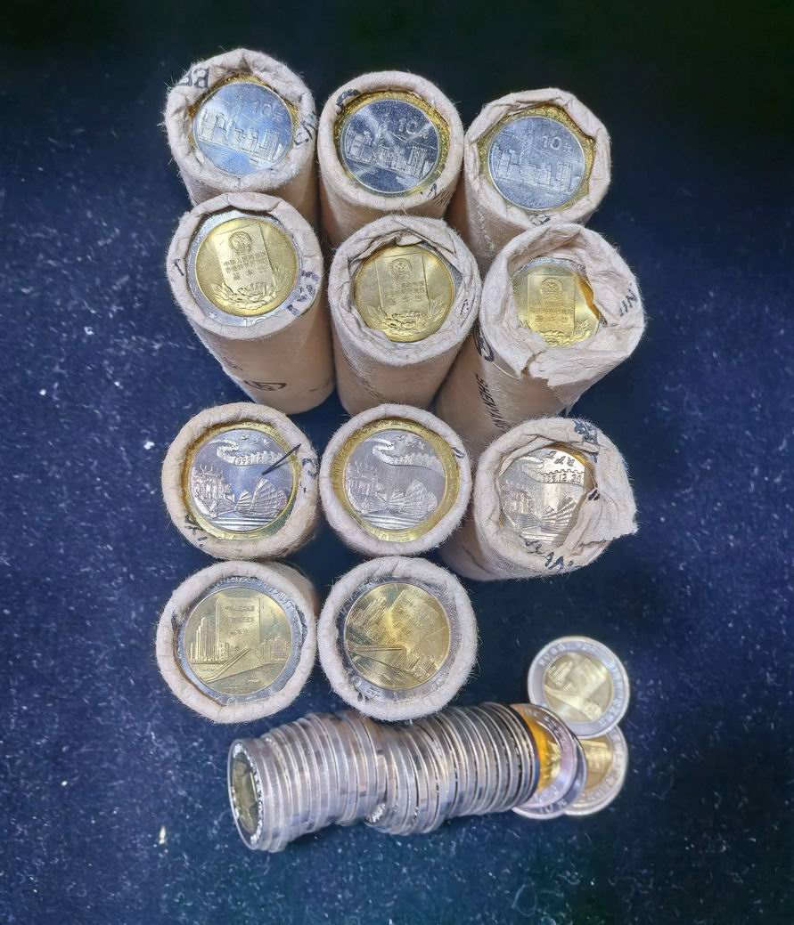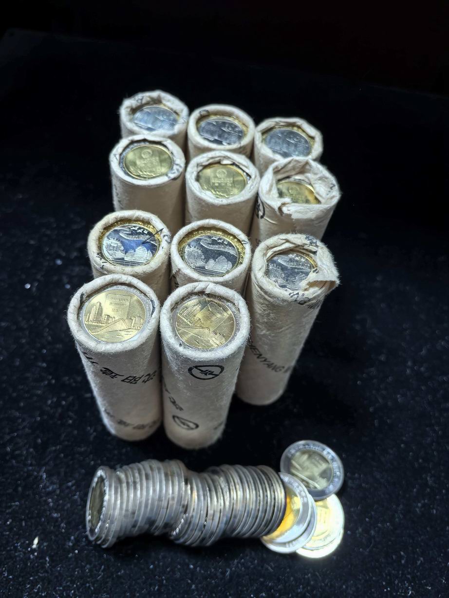 澳门纪念币120套,有的卷裂,一卷没有卷纸,缺7枚单宪法。2330元。