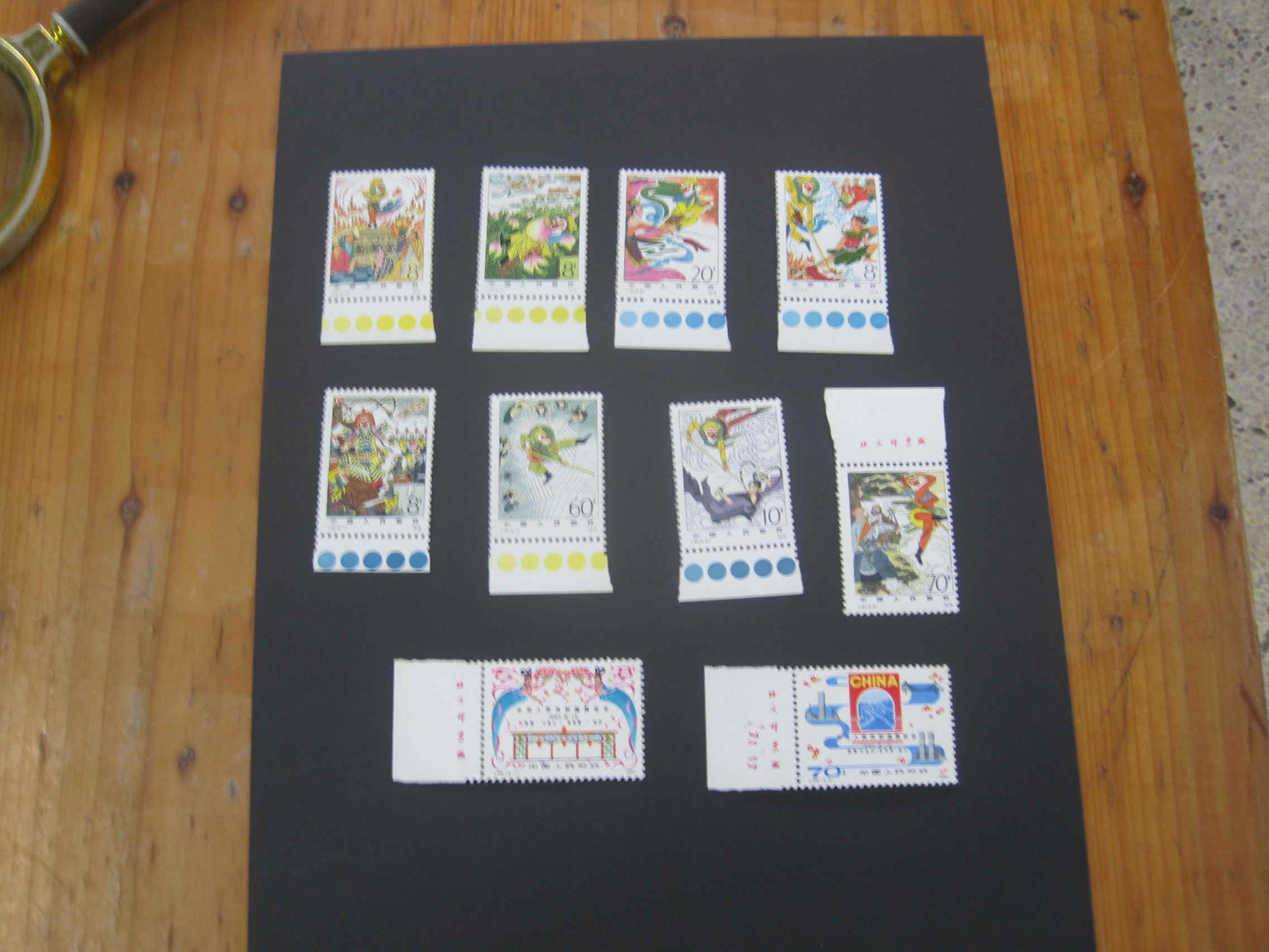 西游上面4枚无折原胶不黄.下面4枚无折原胶黄