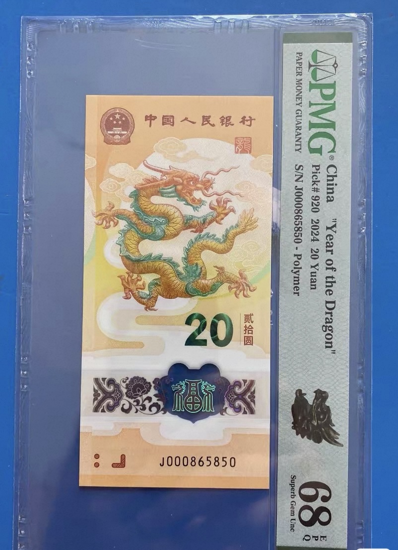 → 6000元出售龙钞小司令金马王000865850PMG68分