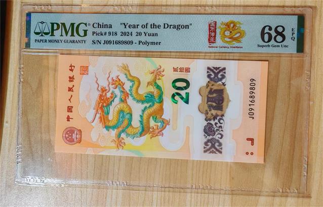 小龙钞五福倒置号,独1金倒置。PMG68,