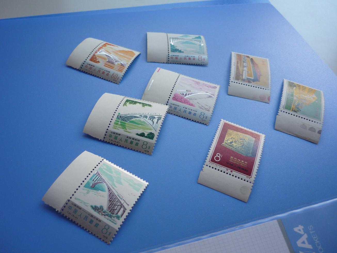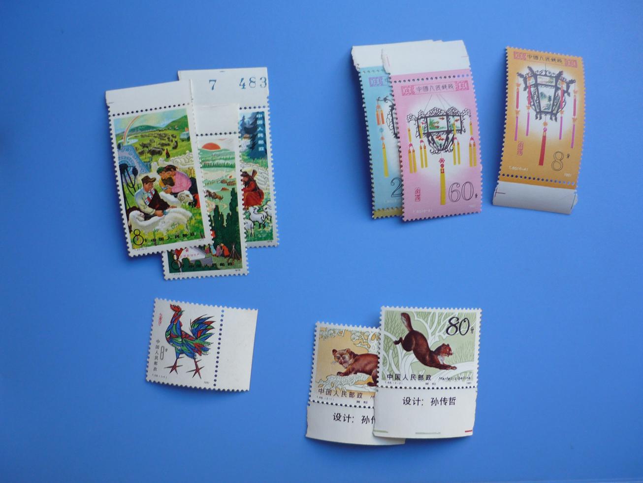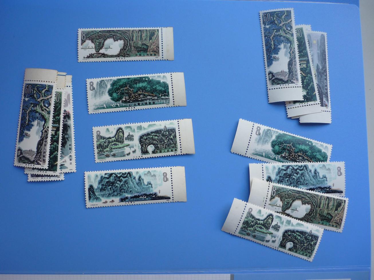 桂林左面一套边均不折110,桂林右面一套边均折103,拱桥边不折银亮近全品26,档案周金亮,金粉这枚边微微折不明显,其余边不折近全品27,牧业边折24,宫灯边不折一枚不顺,近全品120,公鸡边无折裁56,紫貂边折14